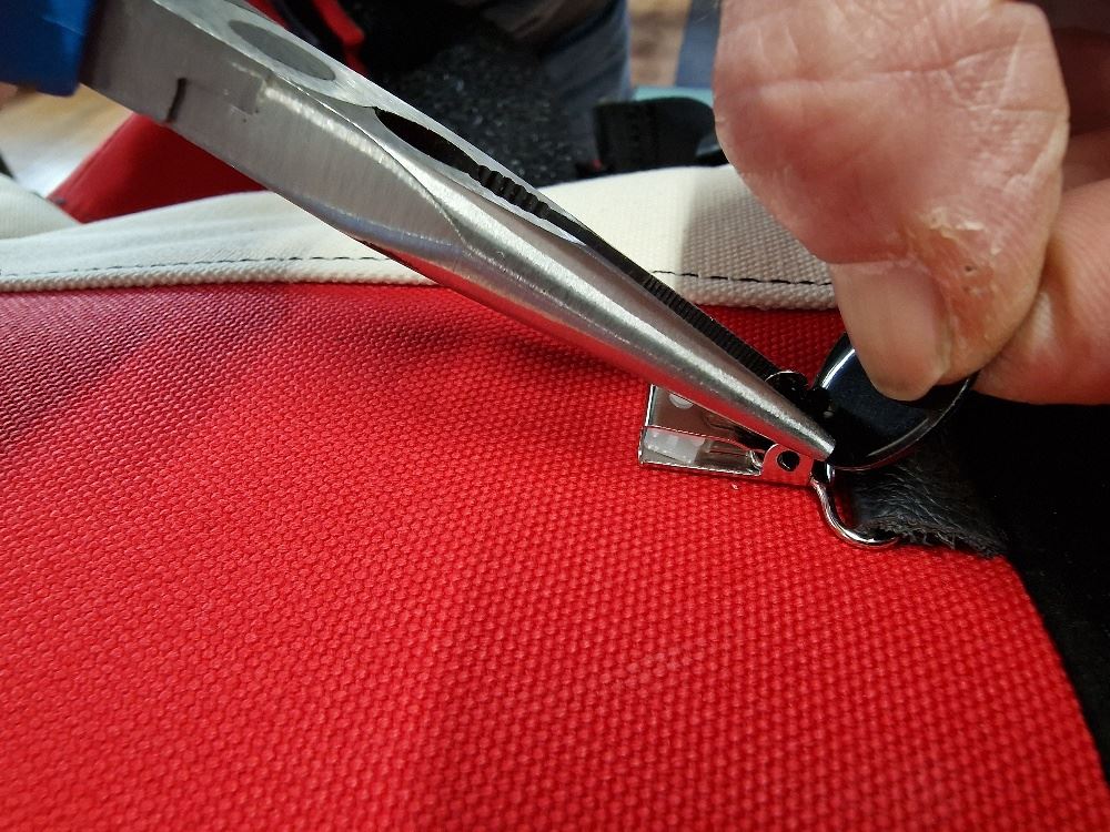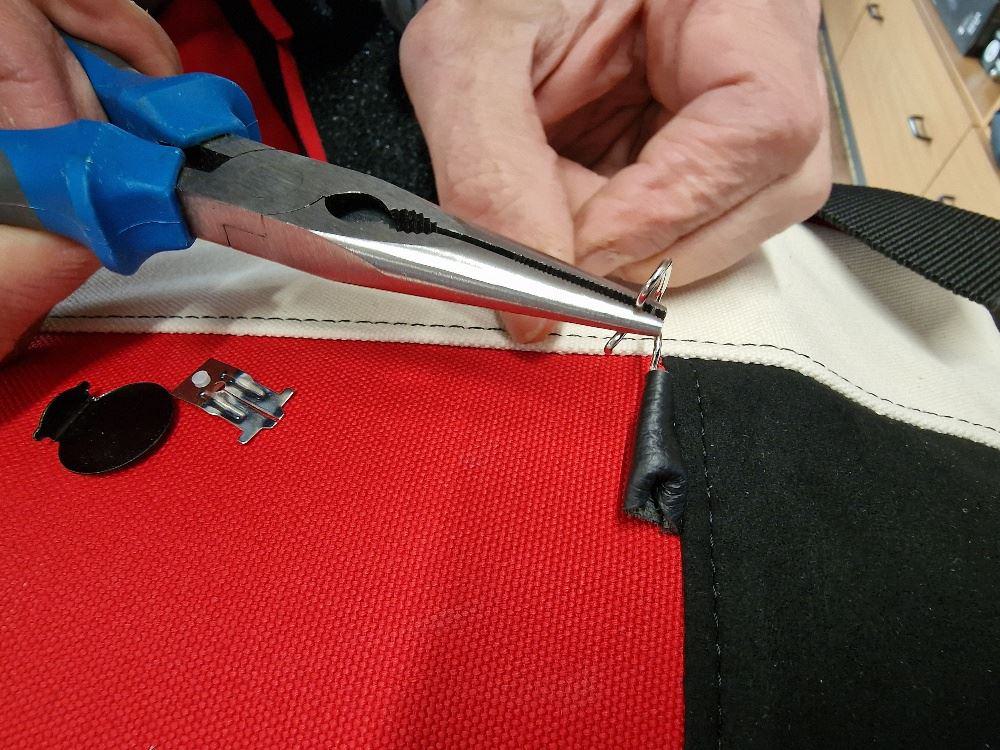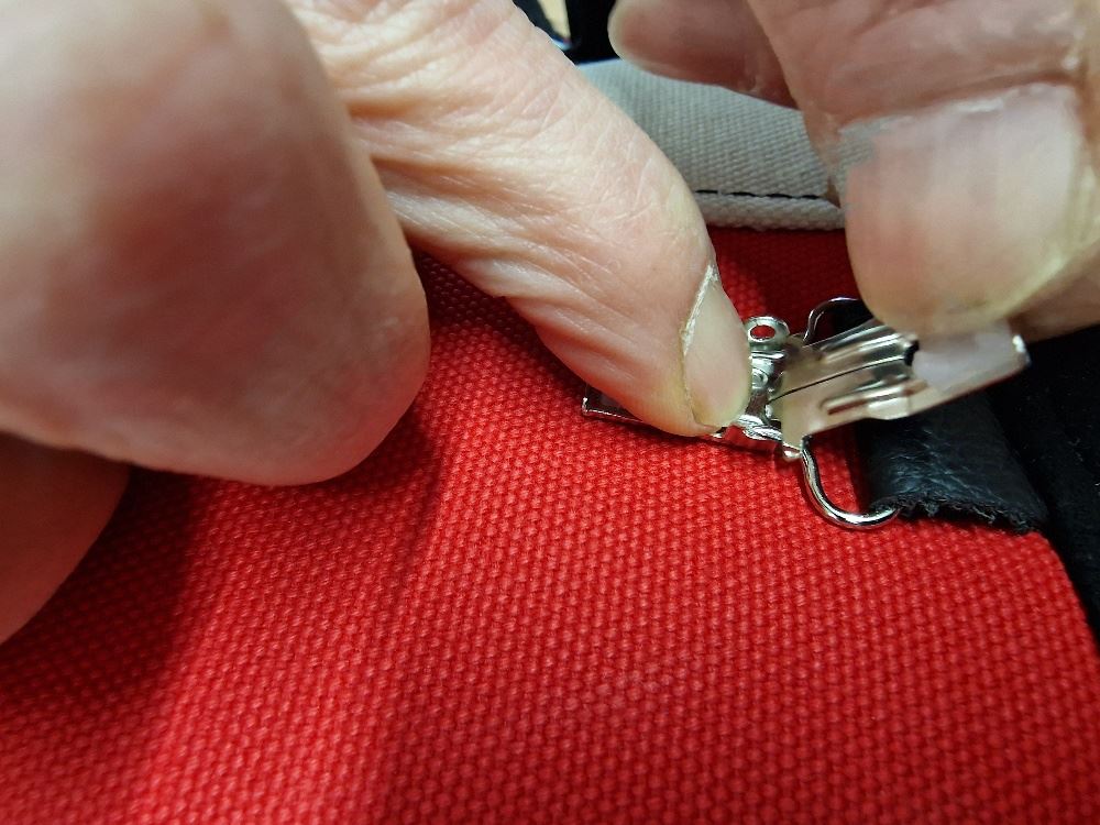 Insert the clip cover into the side eyelet that is not bent -