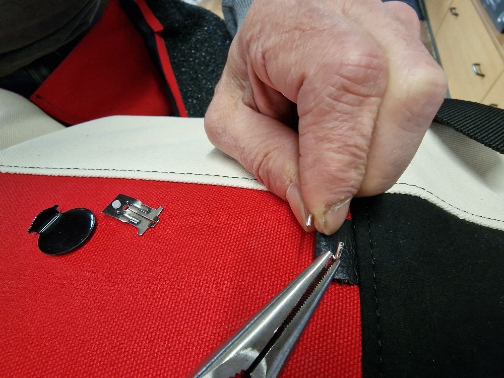 Remove it from the leather piece using pliers -